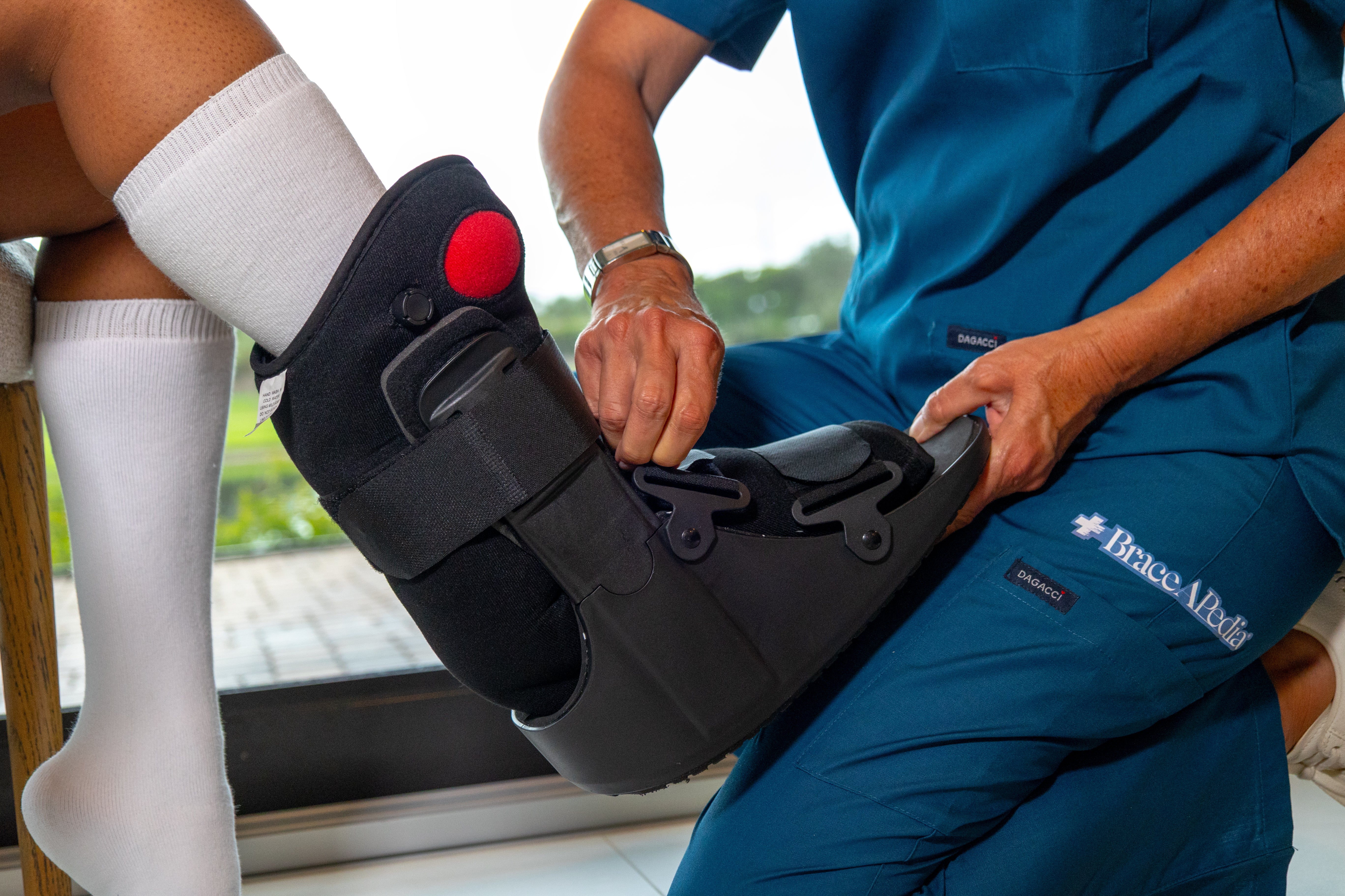 • Additional Features: Easy-to-use side air pump with one-touch release for customizable fit, knee scooter compatible